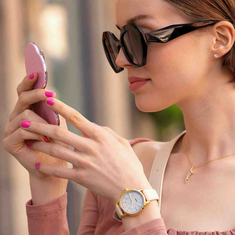 تزئین شده با پیام شایان ستایش "من عاشق تو هستم" آینه جمع و جور صورتی، ایده آل برای حمل با خود، حتی در یک کیف کوچک جا می شود.